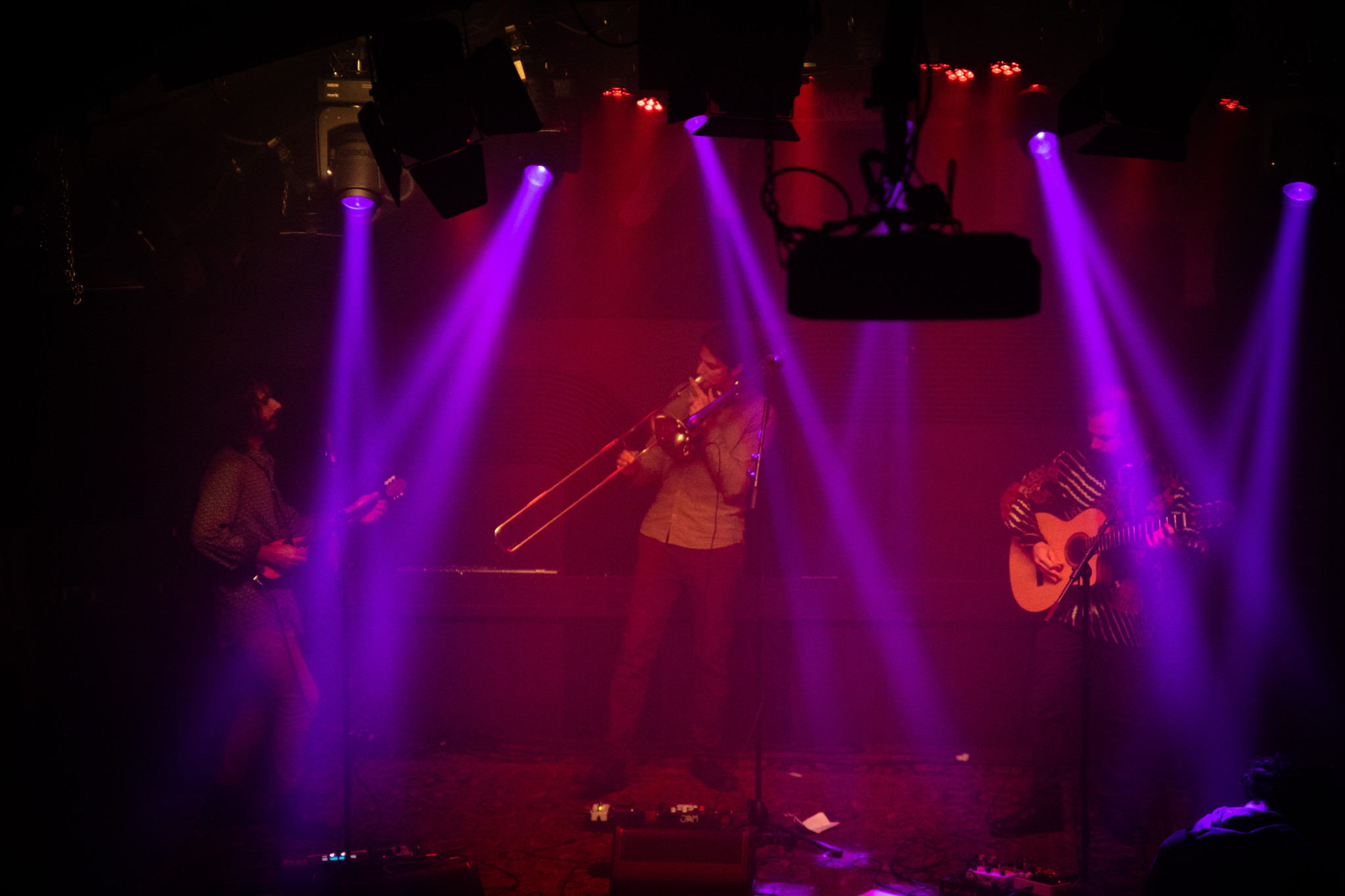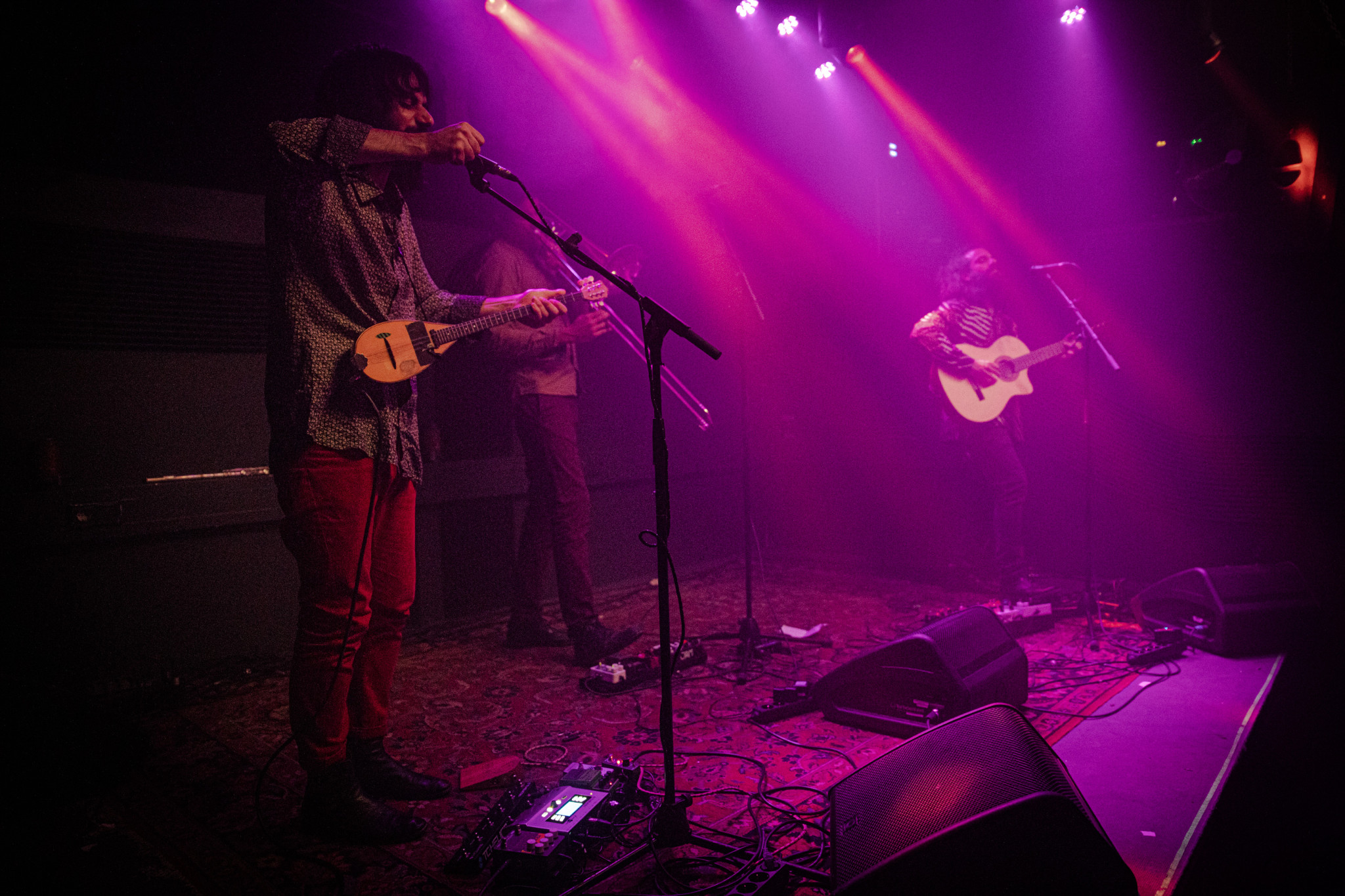 Sie spielten ihre Tzouras (Art Buzuki), Posaune und die akustische Gitarre über etliche Effektpedale und verstärkten damit den Sound zu einem Fiebersturm aus mediterranen Klängen mit mehrstimmigen Gesang. Vieles war überraschend und das Meiste war sehr überzeugend.