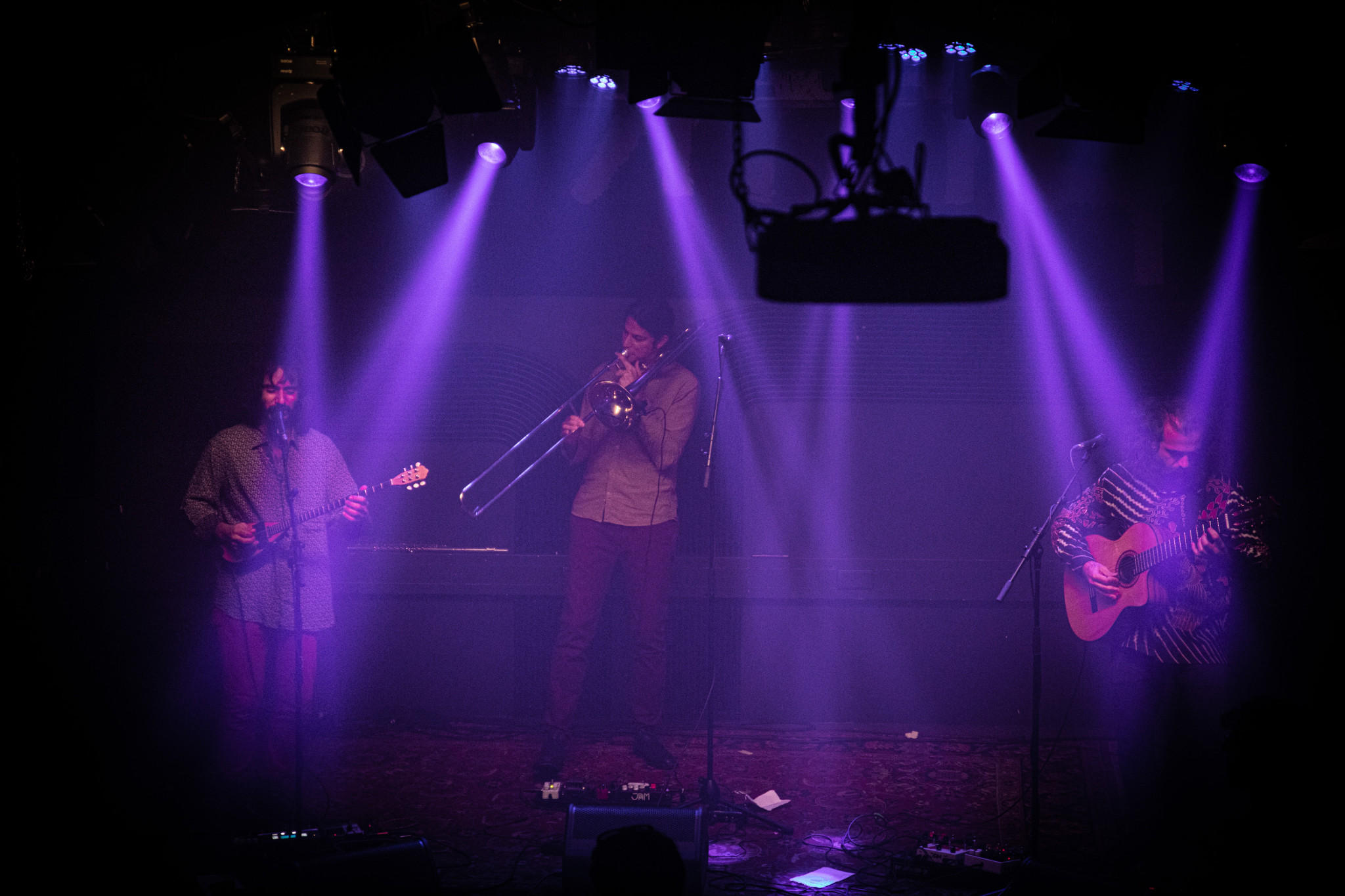 Sie spielten ihre Tzouras (Art Buzuki), Posaune und die akustische Gitarre über etliche Effektpedale und verstärkten damit den Sound zu einem Fiebersturm aus mediterranen Klängen mit mehrstimmigen Gesang. Vieles war überraschend und das Meiste war sehr überzeugend.