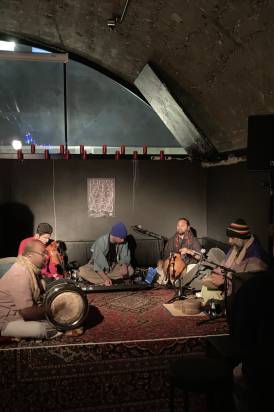 Schwerst beeindruckend war für mich mit welcher Präzision und Hingabe vor allem auch die Percussions und rhythmusgebenden Instrumente, Töpfe und Objekte eingesetzt wurden. Tranceartige Spoken Word Elemente waren genauso dabei wie taktgebende anfeuerndes Singen. Es hatte was von Magie, dazu trug sicher auch bei, dass die fünf Protagonisten allesamt am Boden auf ihren Kissen saßen und sich dem Konzert vollends hingaben.